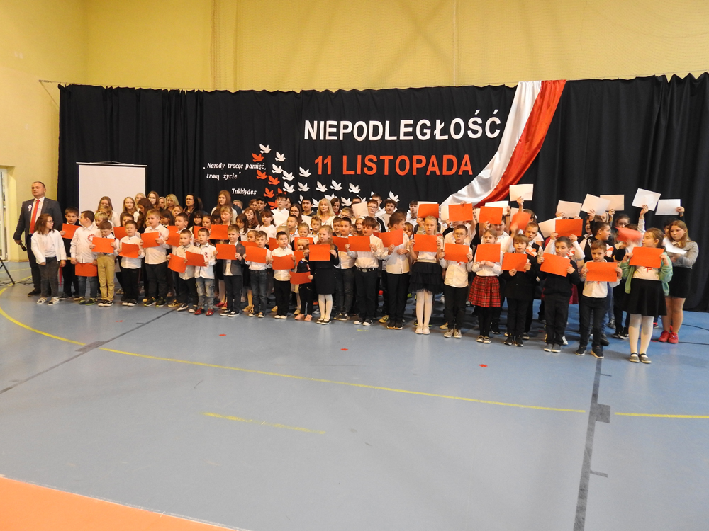 W poniedziałek 14 listopada w naszej szkole odbyła się Gminna Akademia z okazji 104 Rocznicy Odzyskania Niepodległości przez Polskę. W uroczystości wzięła udział Pani Wójt Gminy Krasnystaw Edyta Gajowiak-Powroźnik – współgospodarz uroczystości, zaproszeni goście, nauczyciele, pracownicy szkoły, rodzice oraz uczniowie.