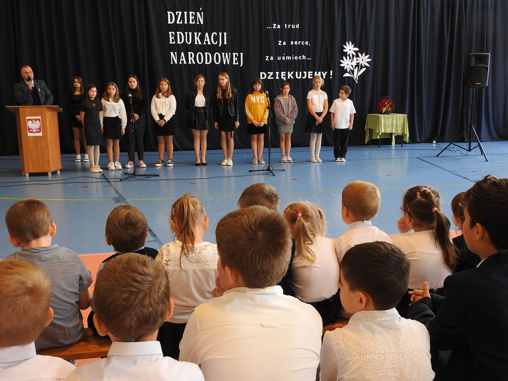 13 października odbyła się w naszej szkole uroczysta akademia z okazji Dnia Edukacji Narodowej. W trakcie uroczystości młodzież szkolna wyraziła wdzięczność i uznanie dla pięknej, aczkolwiek trudnej pracy nauczycieli. Po uroczystej części oficjalnej nawiązującej do historii święta rozpoczęła się część artystyczna prowadzona przez przewodniczącą samorządu uczniowskiego Natalię Barańską. Na początku akademii uczniowie klas 1-3 recytowali cytaty o nauczycielach, podkreślając jednocześnie, jak ważną rolę odgrywają również wszyscy pracownicy oświaty w życiu dzieci. Następnie uczniowie z klasy 7: Maja, Jakub, Karol, Wiktoria i Maciej zaprezentowali krótkie przedstawienie ukazujące pięć typów nauczycieli takich jak: anioł, luzak, służbista, aktywista i sceptyk, wykazując się przy tym talentami aktorskimi i wzbudzając wśród zebranych wiele pozytywnych emocji.