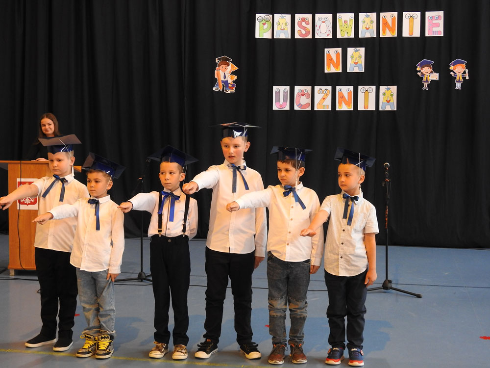 Tradycją naszej szkoły jest uroczystość pasowania na ucznia, którą nasi najmłodsi uczniowie przeżywają corocznie w miesiącu październiku. W bieżącym roku uroczystość miała miejsce w piątek 27 października. Odświętnie ubrani i przejęci pierwszoklasiści, w obecności rodziców i opiekunów, zaprezentowali swoje umiejętności recytatorskie i wokalne. Koledzy ze starszych klas serdecznie ich powitali i zapewnili o swojej pomocy w trudnych chwilach. Po zakończeniu części artystycznej, w niezwykle podniosłej atmosferze przed sztandarem szkoły, uczniowie klasy pierwszej ślubowali być dobrymi Polakami, godnie reprezentować szkołę, swym zachowaniem i nauką sprawiać radość rodzicom i nauczycielom.