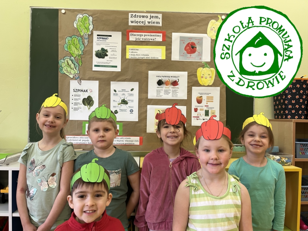 Światowy Dzień Zdrowia, obchodzony corocznie 7 kwietnia, został ustanowiony przez Światową Organizację Zdrowia (WHO) w 1950 roku, aby podkreślić znaczenie zdrowia dla wszystkich ludzi na świecie. Tegoroczne hasło obchodów „Zdrowe początki, pełna nadziei przyszłość” - podkreśla znaczenie dbania o zdrowie od najwcześniejszych lat życia oraz konieczność inwestowania w zdrową przyszłość kolejnych pokoleń. Poniedziałek 7 kwietnia spędziliśmy akcentując zdrowie. Nauczyciele wraz z dziećmi z młodszych klas zajęcia rozpoczęli od wykonania kilku ćwiczeń gimnastycznych, następnie rozmawialiśmy o zdrowym stylu życia, czyli o częstym spożywaniu owoców i warzyw, ograniczeniu spożycia soli i większej aktywności fizycznej. Uczniowie z klas 1-3 narysowali zabawne rysunki owoców i warzyw, a dzieci z oddziału przedszkolnego wykonały plakat „Zdrowo jem, więcej wiem”. W tym dniu do szkoły przyszliśmy w kolorowych ubraniach naśladujących kolor owoców i warzyw.