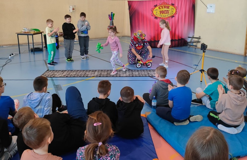 W piątek 28 marca naszą szkołę odwiedzili artyści z cyrku Fokus. W programie występu były pokazy iluzji, akrobacje na mini rowerku, żonglerka piłeczkami, maczugami i obręczami. Wiele emocji wzbudził również występ połykacza ognia. Wybrani uczniowie nie tylko mieli okazję podziwiać sztuczki cyrkowe, ale także brać w nich czynny udział. Występy cyrkowe dostarczyły wszystkim uczniom obecnym na przedstawieniu niezapomnianych wrażeń.