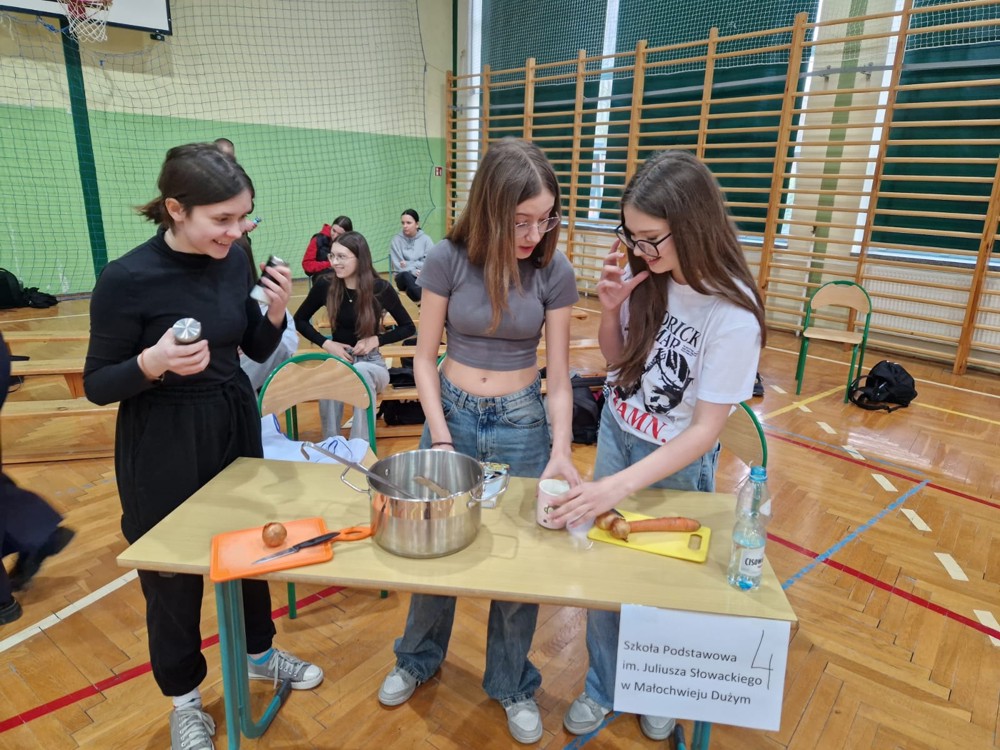 Uczniowie klasy szóstej postanowili Dzień Kobiet spędzić w kuchni. Połączyli świętowanie z integracją i nauką przygotowania prostych potraw. Tym razem zrobili przepyszne zapiekanki. Ponieważ przygotowali ich dużo, zaprosili do degustacji swoich kolegów oraz pracowników szkoły. Wspólne przyrządzanie posiłków a następnie ich spożywanie jest niewątpliwie jedną z najlepszych form budowania dobrych relacji w grupie. Nawet przygotowanie prostych potraw rozwija kreatywność oraz uczy współpracy. Jest to również dobra okazja do rozmowy, do wymiany zdań na różne tematy i do poznawania swoich umiejętności.