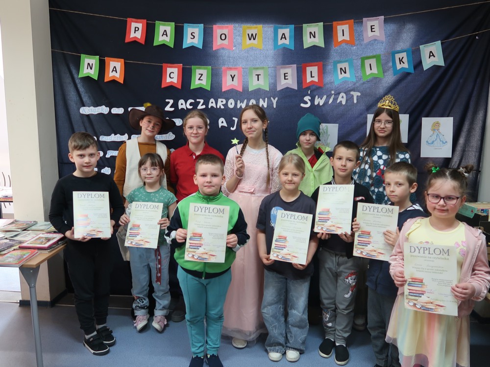 W poniedziałek 24 marca uczniowie klasy pierwszej w obecności wychowawczyni oraz dyrektora szkoły zostali pasowani na czytelnika. Aby zachęcić pierwszaków do odwiedzania biblioteki i czytania książek, uczennice klas starszych pod kierunkiem opiekuna biblioteki przygotowali krótkie przedstawienie dotyczące prawidłowego zachowania się w bibliotece oraz zasad wypożyczania książek w szkolnej bibliotece. Uczennice klas 5-7: Julia Marczewska, Zuzanna Mąka, Maja Marucha, Oliwia Dziedzic oraz Roksana Barańska wprowadziły słuchaczy w magiczny świat książek oraz zaczarowany świat bajek. Na pamiątkę tego wydarzenia uczniowie otrzymali okolicznościowe dyplomy oraz zakładki do książek.
