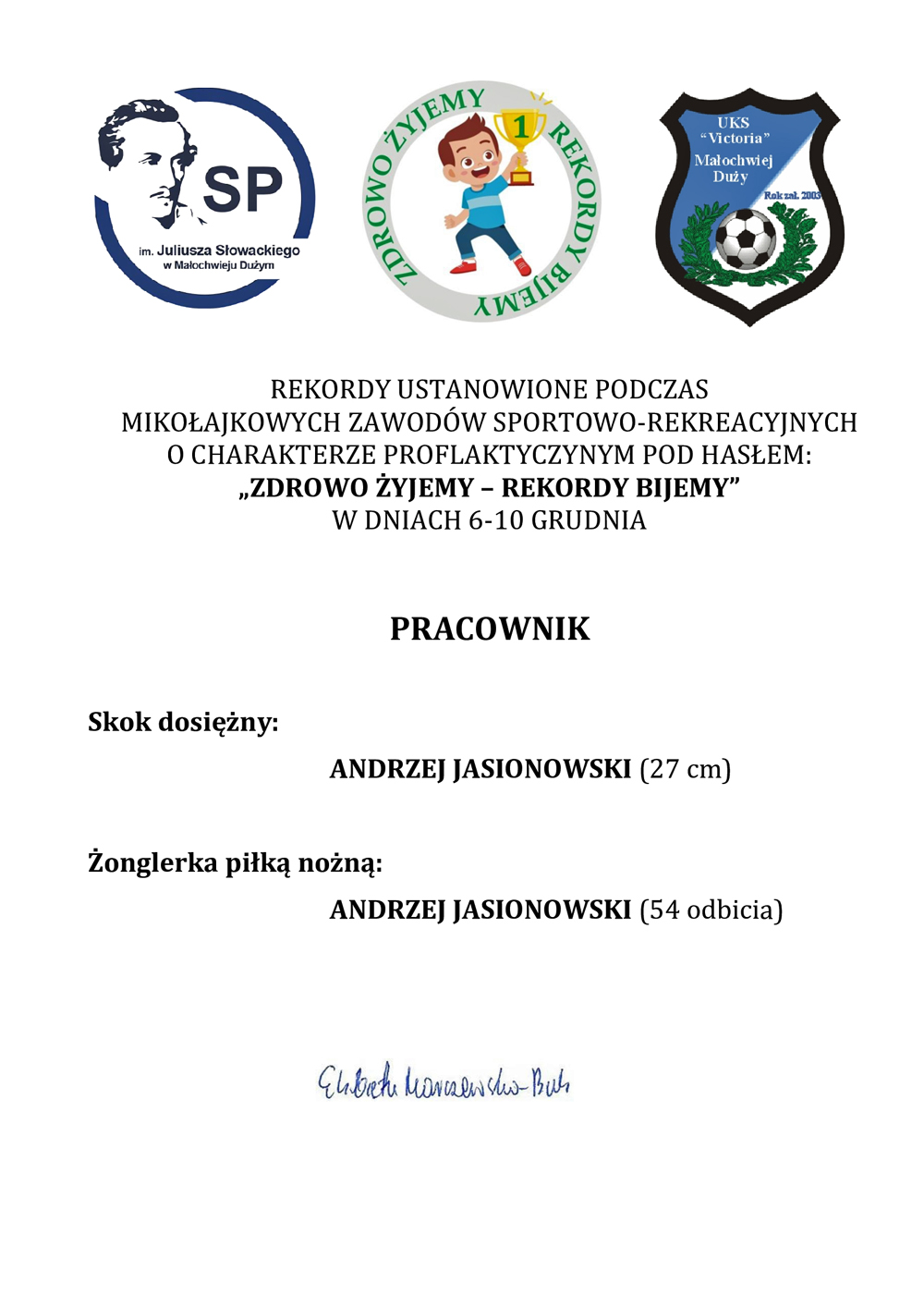 Poniżej indywidualne rekordy szkoły ustanowione podczas zajęć: