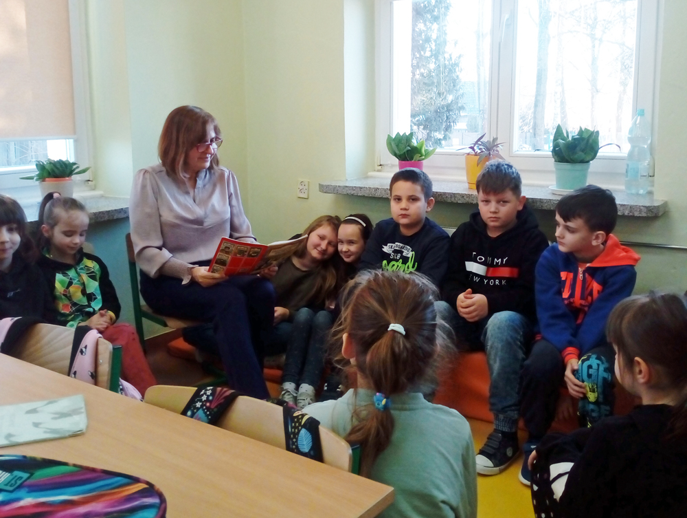 23 lutego uczniowie klasy IV uczestniczyli w wycieczce do Muzeum Regionalnego w Krasnymstawie. Wzięli udział w lekcji muzealnej, którą poprowadził archeolog, pan Konrad Grochecki. Na wstępie pokazał najważniejsze zbiory architektoniczne zgromadzone w muzeum: figurkę „uszebti” pochodzenia egipskiego znalezioną w okolicach Turobina, skarb krzemiennych noży kłośników, skrzynkowy grób kultury amfor kulistych (2500 - 2000 r.p.n.e.) z Łopiennika Dolnego, skarb denarów rzymskich z Romanowa. Następnie – wskazując eksponaty wykonane z gliny – rozmawiał z dziećmi o sposobach ich wykonywania.