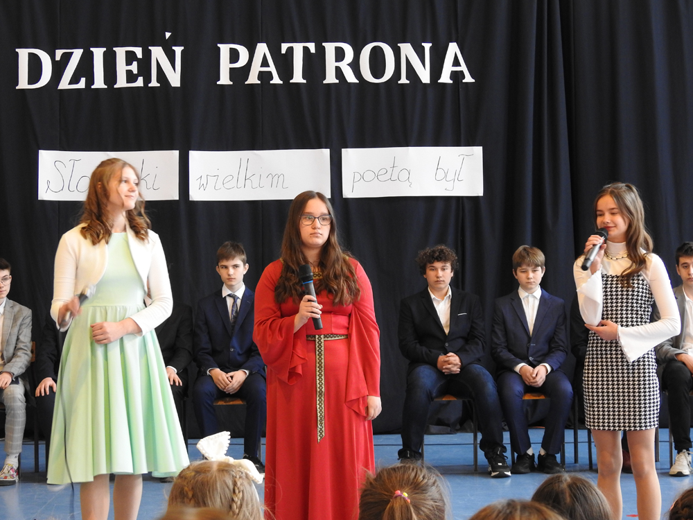 3 kwietnia obchodziliśmy 174 rocznicę śmierci patrona naszej szkoły - Juliusza Słowackiego. Z tej okazji odbyła się uroczysta akademia. Juliusz Słowacki to jeden z najwybitniejszych poetów polskich doby romantyzmu. Wraz z Adamem Mickiewiczem i Zygmuntem Krasińskim określany mianem Wieszcza Narodowego, czyli poety – proroka natchnionego. Marszałek Józef Piłsudski mówił o nim, że królom był równy. Pisał dramaty, poematy i wiersze. Apelował do sumień, uczył, zmuszał do myślenia. Do najbardziej znanych jego dzieł należą dramaty: Balladyna, Kordian, Fantazy, Sen srebrny Salomei, poemat dygresyjny Beniowski oraz wiersze Testament mój, Hymn (Smutno mi Boże) oraz W pamiętniku Zofii Bobrówny. Ten piękny wiersz o tęsknocie do ukochanego kraju podczas akademii zaprezentował Natan Szafraniec.
