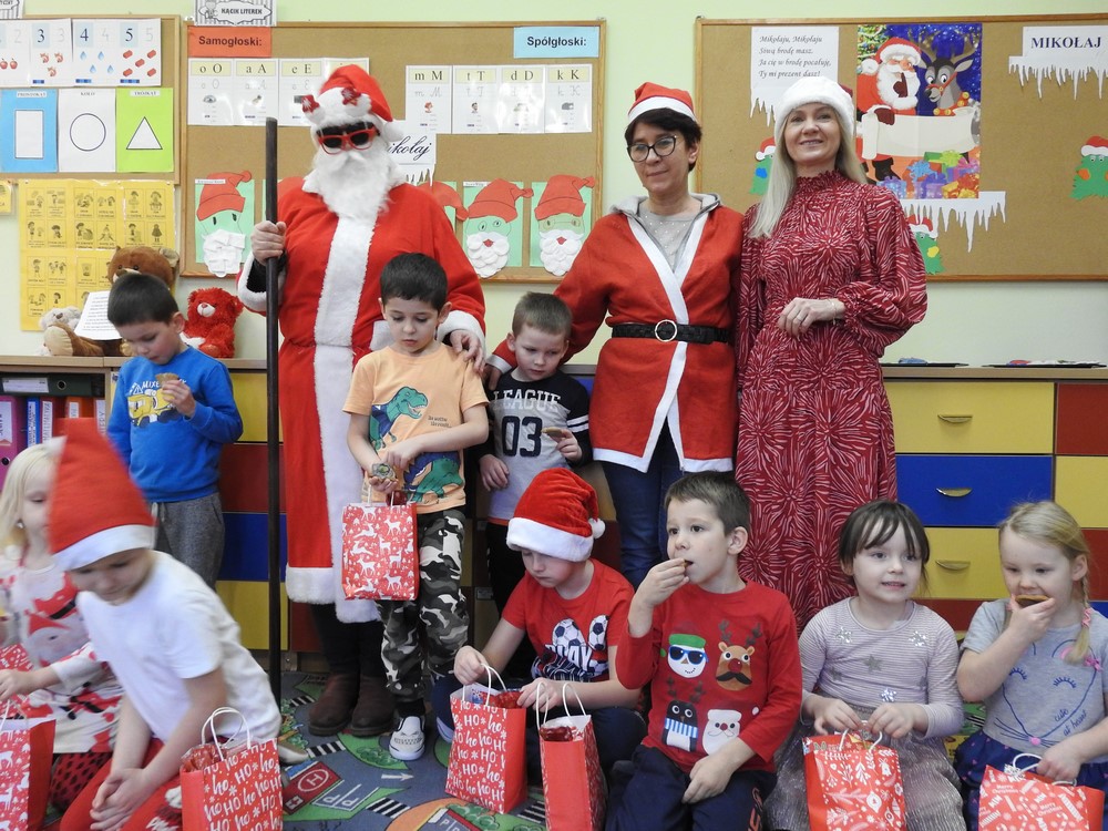 Jak co roku 6 grudnia do naszej szkoły zawitał św. Mikołaj z wypchanym po brzegi workiem z prezentami. Na ten dzień czekali wszyscy, jednak szczególnie najwięcej emocji i radości „niecodzienna wizyta” wzbudziła w najmłodszych uczniach oddziału przedszkolnego oraz klas 1-3. W podziękowaniu za otrzymane prezenty nasi uczniowie śpiewali piosenki i recytowali wierszyki pod kierunkiem swoich wychowawców. Była to również niezwykła okazja do zrobienia sobie pamiątkowych zdjęć ze św. Mikołajem. Wielu uczniów w tym dniu przyszło do szkoły w „mikołajowych” czapkach, co sprawiło, że korytarze szkolne były pełne uśmiechniętych „Mikołajów”. Ten dzień był dla całej naszej społeczności szkolnej dniem wyjątkowym, jak co roku wyczekiwanym, bo któż z nas nie lubi dostawać prezentów. Św. Mikołaj opuszczając naszą szkołę podziękował za miłe przyjęcie i obiecał, że za rok ponownie nas odwiedzi. Dzięki tej wizycie jeszcze bardziej czujemy magię zbliżających się świat Bożego Narodzenia – za to też dziękujemy.