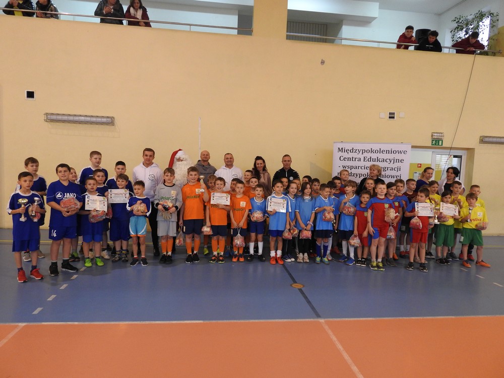 W sobotę 3 grudnia nasza szkoła gościła młodych piłkarzy i piłkarki w wieku 7-9 lat uczęszczających do szkół podstawowych z terenu Gminy Krasnystaw na Piłkarskim Turnieju Niepodległości, który odbył się zarówno w ramach realizacji programu Ministerstwa Edukacji i Nauki pn. „Międzypokoleniowe Centra Edukacyjne – wsparcie integracji międzypokoleniowej” jak również w ramach realizacji zadania publicznego finansowanego przez Gminę Krasnystaw pn. "Przeciwdziałanie uzależnieniom i patologiom społecznym". Patronat honorowy nad turniejem objęła pani Edyta Gajowiak-Powroźnik – Wójt Gminy Krasnystaw. Ku uciesze kibiców turniej obfitował w wiele bramek, których padło aż 55 w rozegranych 10 meczach. Z pewnością sprzyjała temu m.in. różnica wieku młodych sportowców, ponieważ część drużyn miała w swoim składzie przeważającą część dzieci z klasy 1 a w części innych trzon drużyny stanowili piłkarze i piłkarki z klas 3. Nie wyniki jednak w tym dniu były najważniejsze. Jednym z głównych celów turnieju była sportowa rywalizacja ze szczególnym zwróceniem uwagi na przestrzeganie zasad fair-play, w związku z tym na turnieju nie prowadzono klasyfikacji punktowej dlatego też wszyscy uczestnicy otrzymali puchary i dyplomy za sam udział w turnieju.