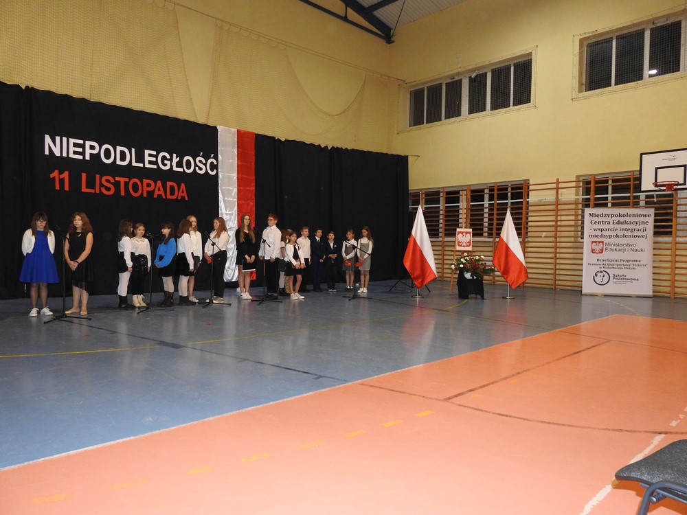 We wtorek 22 listopada w trakcie zebrania z rodzicami/opiekunami zaprezentowaliśmy montaż słowno-muzyczny związany z narodowym Świętem Niepodległości. Premiera programu miała miejsce 14 listopada podczas gminnej akademii, 19 listopada uczniowie przedstawili go mieszkańcom Małochwieja Małego, po raz trzeci zaś obejrzeli go rodzice podczas śródokresowego zebrania. Było to kolejne działanie w ramach realizacji programu „Międzypokoleniowe Centra Edukacyjne – wsparcie integracji międzypokoleniowej”.