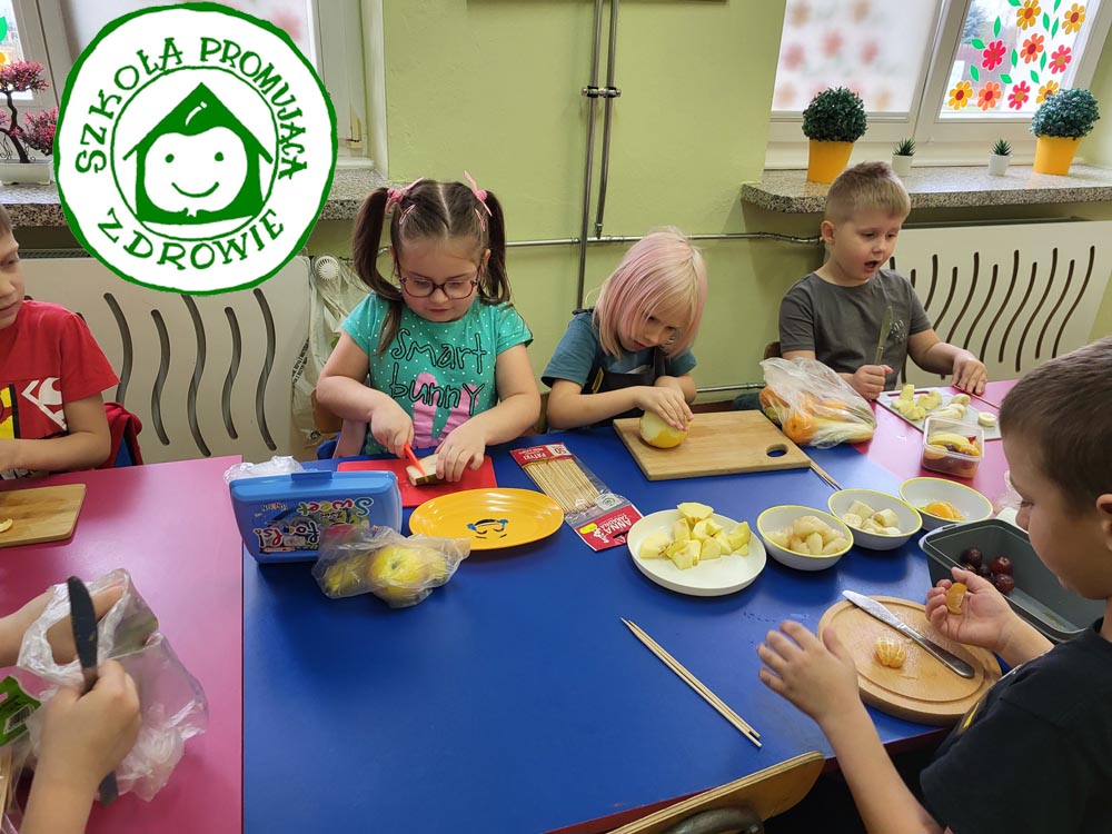 Jako szkoła pretendująca do członkostwa w Wojewódzkiej Sieci Szkół Promujących Zdrowie tworzymy warunki sprzyjające dobremu samopoczuciu społeczności szkolnej oraz podejmujemy szereg działań na rzecz zdrowia. Kształtujemy prawidłowe nawyki żywieniowe, zwiększamy świadomość na temat wiodącej roli warzyw i owoców w diecie każdego człowieka. Jak pisał Ludwik Feuerbach „Człowiek jest tym, co je”, dlatego stawiamy na zdrowe odżywianie nie tylko od święta, ale przede wszystkim na co dzień. Wtorek 8 listopada był w naszej szkole "Dniem Zdrowego Odżywiania". W klasach 4-7 podczas lekcji z wychowawcą, omawiane były zagadnienia związane z prawidłowym odżywianiem oraz wspólnie wykonano zdrowe, kolorowe posiłki: kanapki, szaszłyki owocowe, tortille warzywne. Dzieci z klas 1-3 oraz oddziału przedszkolnego dowiedziały się, czym jest „Piramida Zdrowego Odżywiania”em> oraz jakie produkty spożywać, by być zdrowym i pełnym energii, tworzyły również rysunki promujące zdrowy styl życia.