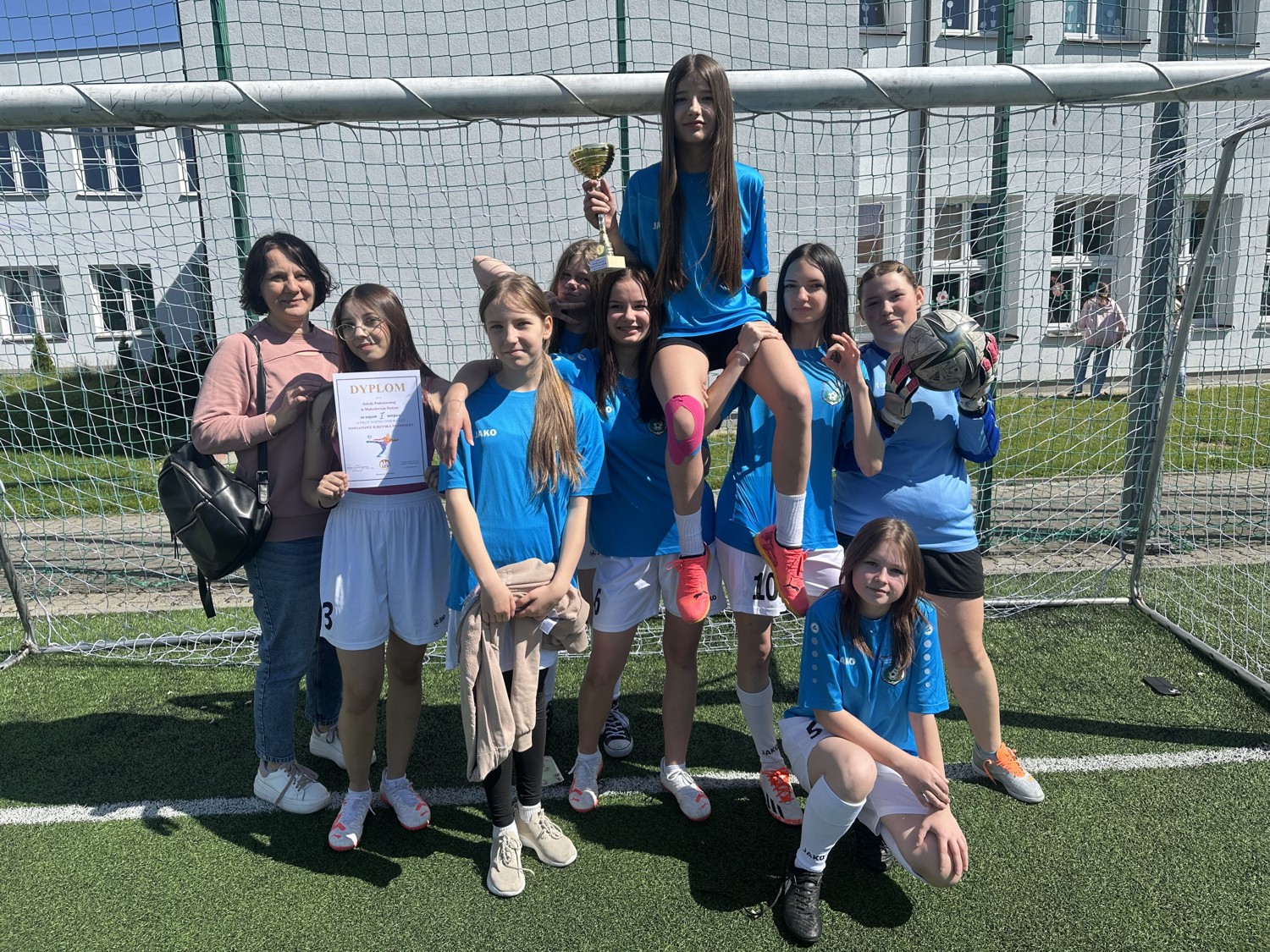 W poniedziałek 28 kwietnia na obiektach sportowych Szkoły Podstawowej nr 1 w Krasnymstawie odbyły się Powiatowe Igrzyska Młodzieży w piłce nożnej dziewcząt. Nasze dziewczęta pokonując swoje rywalki w stosunku 3:0, 5:0 i 5:1 zajęły I miejsce i będą reprezentować naszą szkołę oraz powiat na etapie rejonowym w Tomaszowie Lubelskim. Serdeczne gratulacje dla dziewcząt oraz pani Elżbiety Marczewskiej-Buk - nauczycielki wychowania fizycznego.