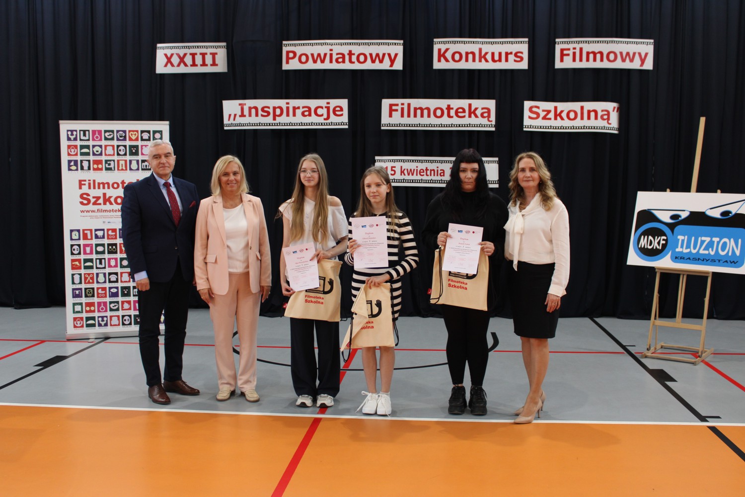 I miejsce Oliwii, II miejsce Mai oraz wyróżnienia dla Eli i Alli to osiągnięcia naszych uczennic w Powiatowym Konkursie Filmowym. 15 kwietnia w sali gimnastycznej II Liceum Ogólnokształcącego w Krasnymstawie odbyła się Gala finałowa XXIII Powiatowego Konkursu Filmowego „Inspiracje Filmoteką Szkolną”. Jego uczestnicy – podzieleni na dwie grupy wiekowe - mogli wziąć udział w trzech wybranych przez siebie kategoriach: plakat filmowy lub praca filmowa/praca fotograficzna/ fotokast lub scenariusz filmowy. Naszą szkołę reprezentowały cztery uczennice – wszystkie wybrały kategorię cieszącą się największym powodzeniem, czyli plakat filmowy. Oliwia Dziedzic i Maja Marucha z klasy szóstej wykonały plakaty do filmu „Abel, twój brat” Janusza Nasfetera, natomiast Elżbieta Ciepałowicz i Alla Voroshyk z klasy ósmej przygotowały plakaty do filmu „Ssaki” Romana Polańskiego. Ich prace zostały docenione przez komisję konkursową oraz nagrodzone.
