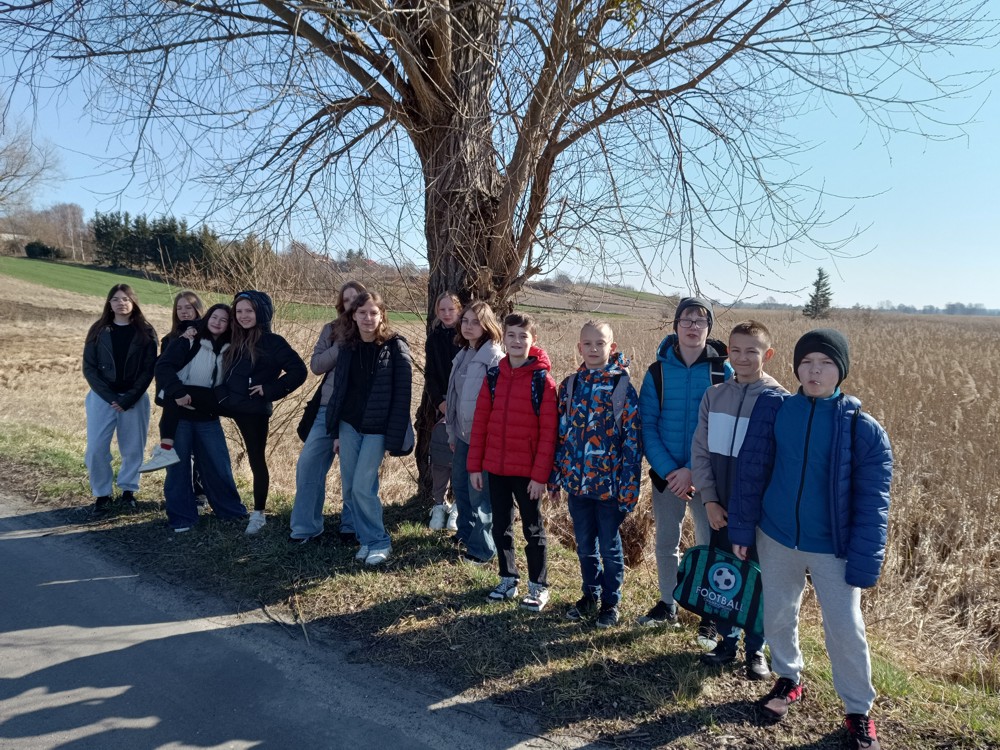 Uczniowie klasy szóstej dwie godziny pierwszego dnia wiosny spędzili na świeżym powietrzu. Udali się na dłuższy spacer po najbliższej okolicy, a ich zadaniem było wyszukiwanie i rejestrowanie pierwszych oznak wiosny. Udało się zrobić wiele ciekawych zdjęć, niektórzy uczniowie wykazali się dużymi umiejętnościami fotografowania przyrody. Wspólne spędzanie czasu na świeżym powietrzu pomaga w integrowaniu zespołu klasowego, sprzyja poznawaniu swoich zainteresowań i umiejętności. Ciepłe, wiosenne słońce na pewno pozytywnie wpłynęło na nastrój wszystkich uczestników wyprawy, a spacer spowodował lepsze dotlenienie organizmu.