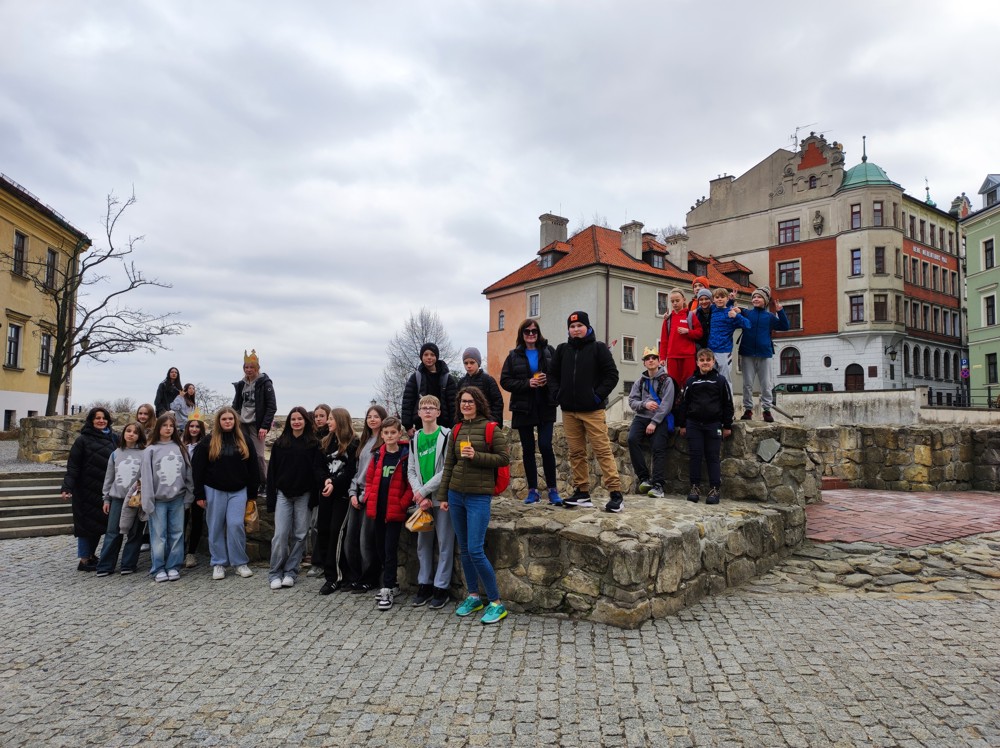 18. marca klasy 4, 5 oraz kilkoro uczniów z klasy 6 uczestniczyło w wyjeździe zorganizowanym z okazji Dnia Kobiet. Nasz pobyt w Lublinie rozpoczęliśmy od lekcji muzealnej w Muzeum Narodowym na Zamku Lubelskim, gdzie pani przewodnik oprowadziła nas po kilku wystawach stałych. Nasze zwiedzanie rozpoczęliśmy od makiety zamku. Początki Zamku sięgają XII w., następnie został on rozbudowany przez króla Kazimierza Wielkiego w XIV w., ale nie przetrwał w tej formie do naszych czasów z powodu konfliktów zbrojnych i pożaru. Uczniowie poznali też smutną odsłonę historii Zamku, który pełnił funkcję więzienia carskiego, hitlerowskiego i komunistycznego w latach trudnej historii naszego kraju. Najstarszą zachowaną budowlą z oryginalnego założenia jest okrągła wieża z XII w. – donżon z tarasem widokowym, którego nie udało nam się odwiedzić z powodu niskiej temperatury i przenikliwego wiatru. Następnie przeszliśmy przez galerię portretów sarmackich z czasów, gdy w Lublinie siedzibę miał Trybunał Koronny.