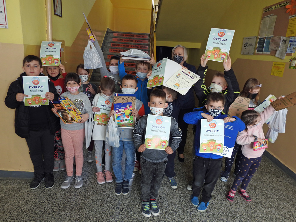 W trosce o nasze wspólne środowisko i budowanie ekologicznych postaw wśród najmłodszych powstał projekt edukacyjny „Przygody Kota Ciepłosława”, przygotowany przez PGE Energia Ciepła. Adresowany był do uczniów klas 1-3 szkoły podstawowej. Celem tego programu było przekazanie uczniom wiedzy o tym jak powstaje ciepło i skąd się bierze prąd. Patronat honorowy nad akcją objął ówczesny Minister Edukacji Narodowej Dariusz Piontkowski. Głównym bohaterem projektu był sympatyczny Kot Ciepłosław, który jest specjalistą od energii i ciepła. Przekazywał on wiedzę, na temat oszczędzania ciepła i energii. W ciekawy sposób wyjaśniał dzieciom jak powstaje ciepło sieciowe, mówił o elektrociepłowni. Kot Ciepłosław korzystał z pomocy swoich asystentów Pstryczka Elektryczka i Felki Kaloryferki. Wspólnie ze swoimi przyjaciółmi pomagał zrozumieć trudne zagadnienia w prosty i praktyczny sposób. Nasi uczniowie z klasy pierwszej chętnie wzięli udział w powyższym projekcie. Podczas edukacyjnej przygody dzieci poznały odpowiedzi na takie pytania: Co to jest ciepło sieciowe? Skąd się bierze ciepło? Czym jest ciepło sieciowe? Dlaczego warto oszczędzać ciepło? Co to znaczy, bądź eko, wybieraj ciepło sieciowe? Do zajęć dołączony był krótki filmik wyjaśniający istotę danego zagadnienia. Uczniowie wykonywali karty pracy oraz pogłębiali swoją wiedzę korzystając z różnego rodzaju gier edukacyjnych. Punktem końcowym projektu było rozwiązanie testu oraz wykonanie wspólnego klasowego komiksu przedstawiającego dalsze przygody Kota Ciepłosława (elementy komiksu znajdują się w poniższej galerii zdjęć). Tematem przewodnim pracy było „Dbamy o środowisko, segregujemy śmieci”.