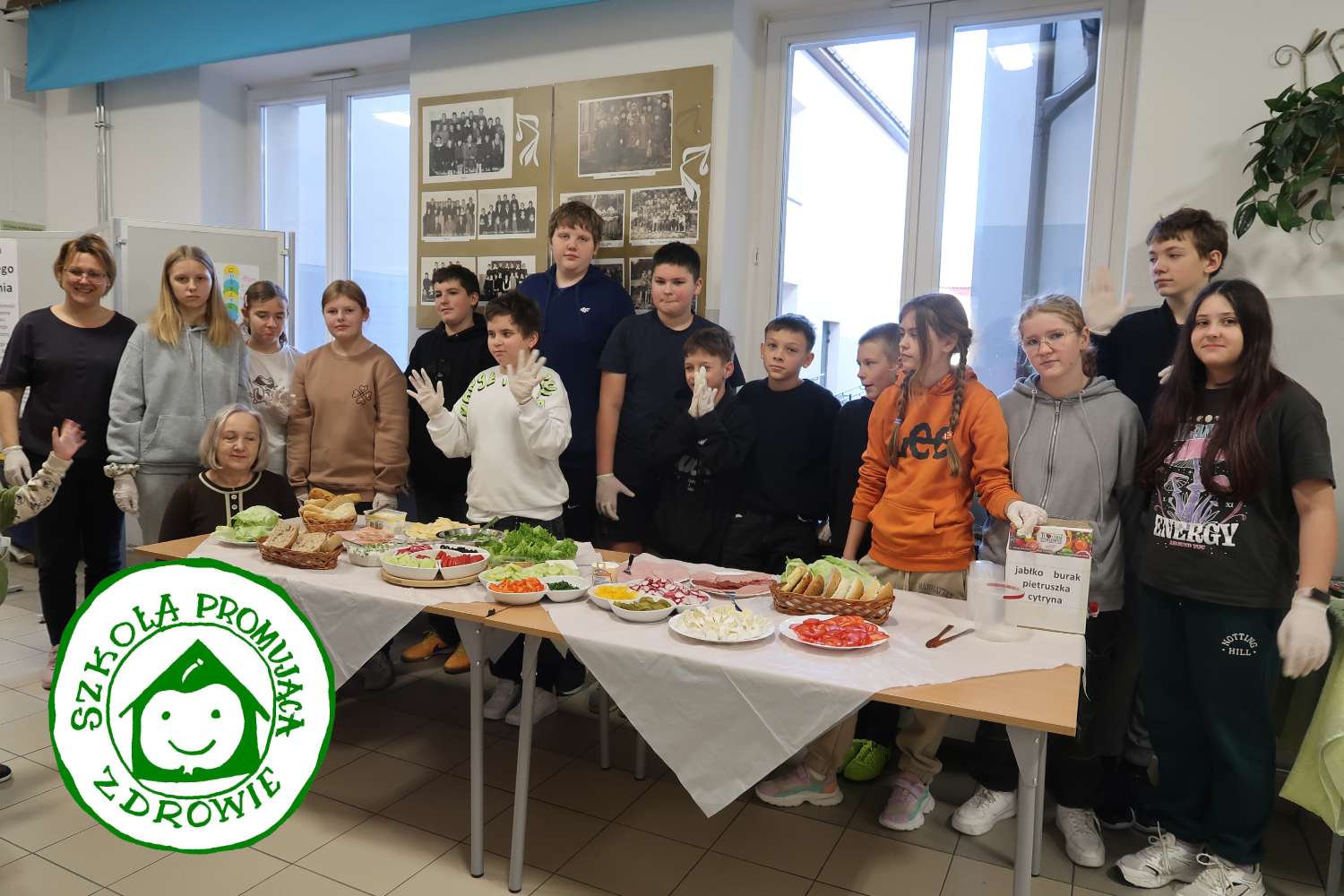 W czwartek 13 listopada w naszej szkole przeprowadzona została akcja pod hasłem „Dzień Zdrowego Śniadania”. Akcję przeprowadzili uczniowie klasy 6 w ramach działań Samorządu Uczniowskiego i Szkolnego Koła PCK. W ramach akcji uczniowie zdecydowali się przygotować kiermasz zdrowych kanapek składających się z pieczywa razowego i wieloziarnistego, past twarogowej i jajecznej, humusu, serów żółtych i pleśniowych z wielością kolorowych warzyw. Dla „odważnych” przygotowane były soki warzywno-owocowe zawierające jabłko, buraczek ćwikłowy, pietruszkę i cytrynę.